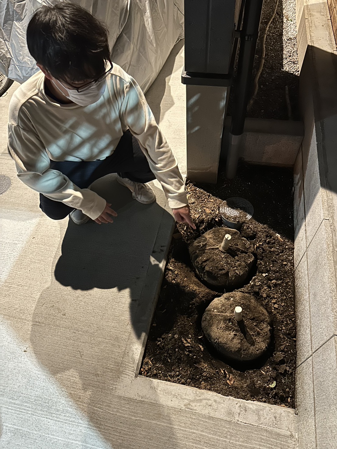 ビフォーのお写真でお客様が指差しているのが、まさにその根鉢です!🌳土がしっかりと付着しており、見た目以上にずっしりと重みのあるアイテム…!