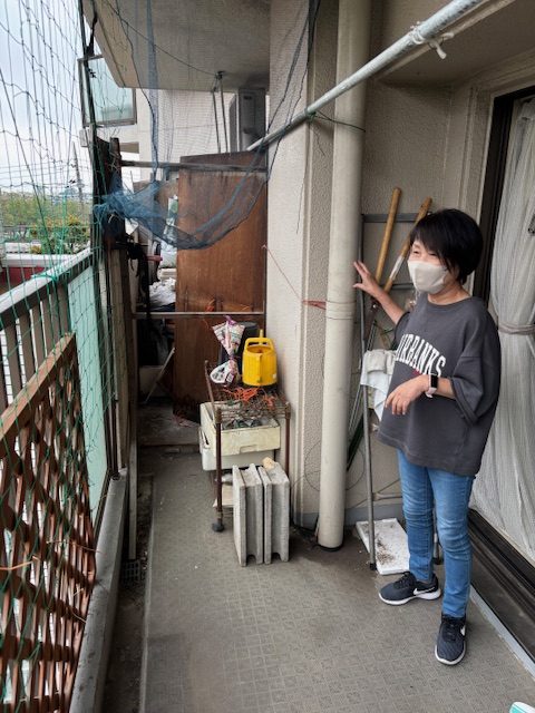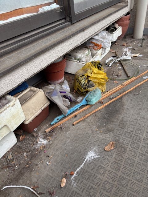 ベランダに自作した扉や鳥よけのネットなどの分、廃材などのかき出しや