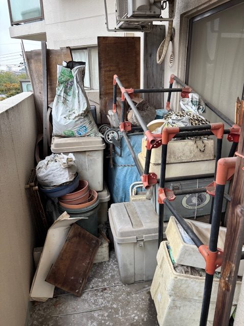 マンションベランダに長年溜め込んでしまった植木や古土・