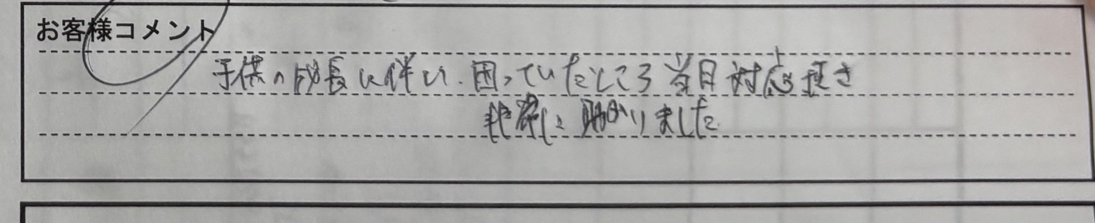 『子供の成長に伴い困っていたところ当日対応頂き非常に助かりました。』