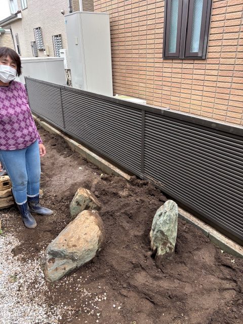 戸建て裏庭に長年埋まっていた庭石をどかして芝生を敷く為に