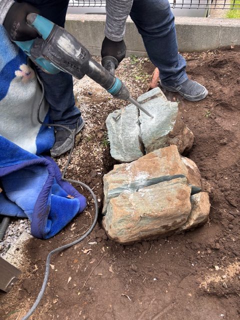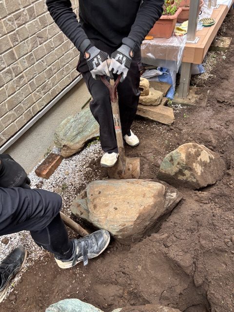 そして植木であれば、地面に根付いているものは切り込みを入れて抜根となってきたり庭石や岩石はスコップで掘り進め削岩用のドリルで破壊したり。
