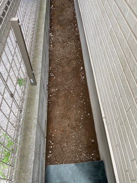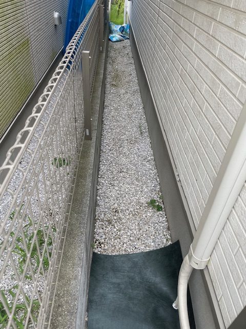 戸建て周りの通路いっぱいに敷かれた砂利『1㎥分』をスコップ・