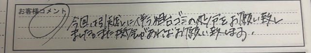 『今回は引越しに伴う粗大ゴミの処分をお願い致しました。また機会があればお願い致します。』