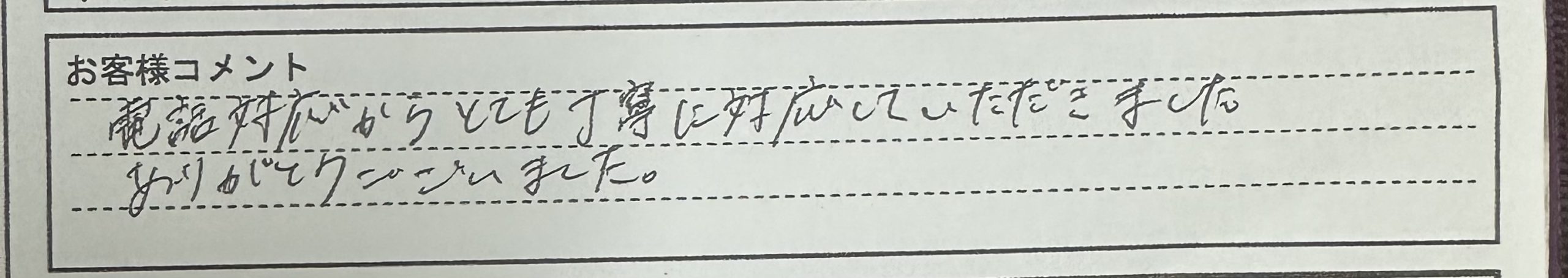 さらにお客様からは感謝のコメントをお書き下さ
