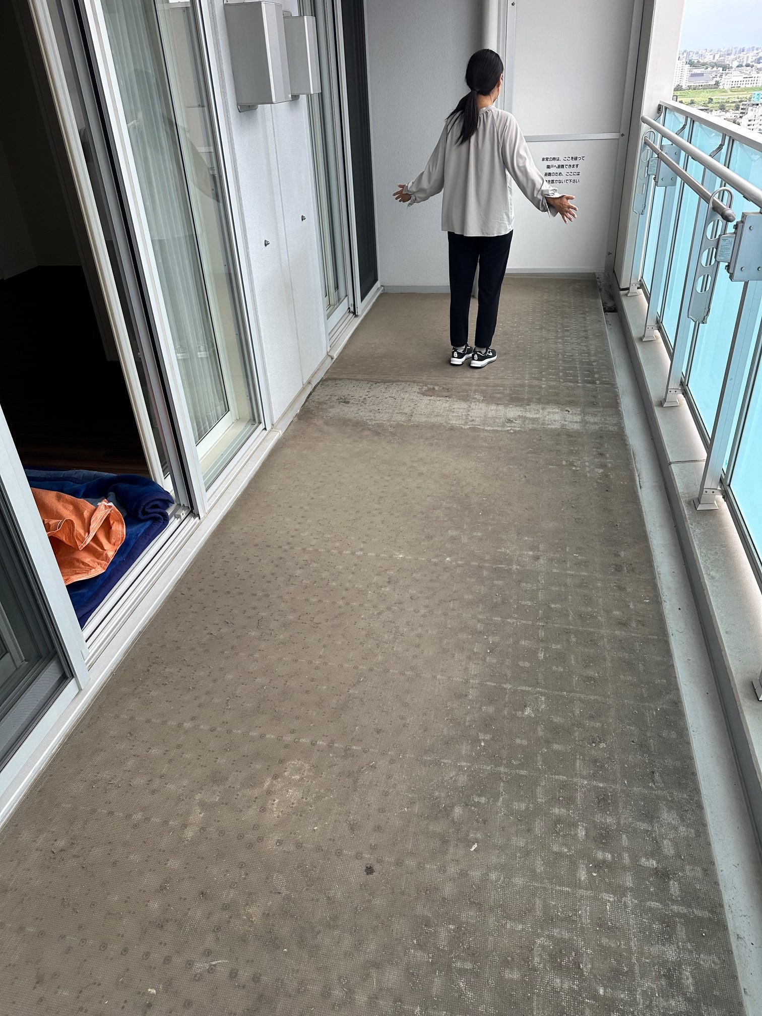 掃き掃除をし、バルコニーをきれいな状態にして