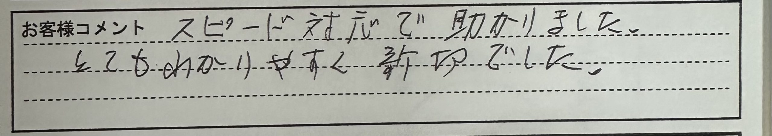 回収後、お客様から感謝のお言葉を残して頂きましたので、続けてご紹介致します。