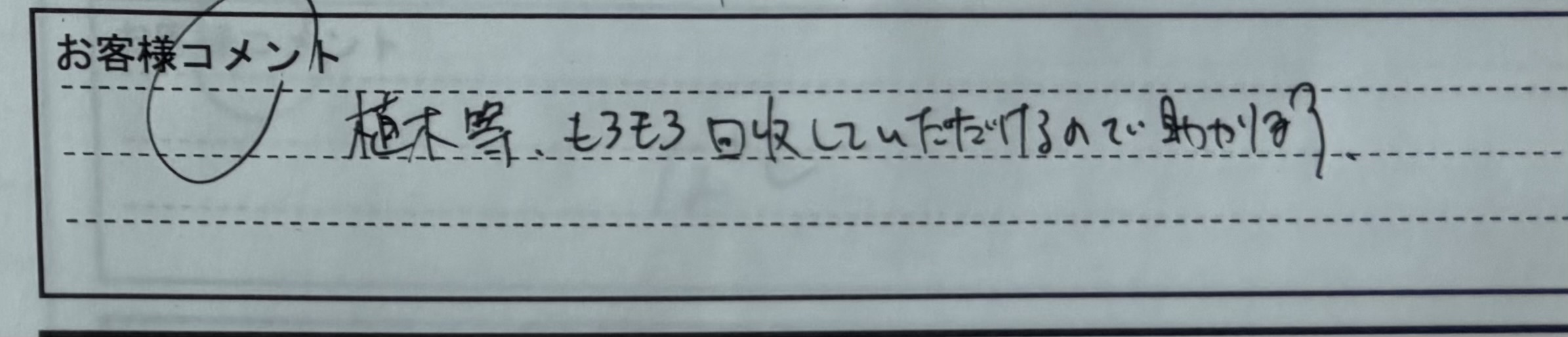 『植木等、もろもろ回収して頂けるので助かります。』